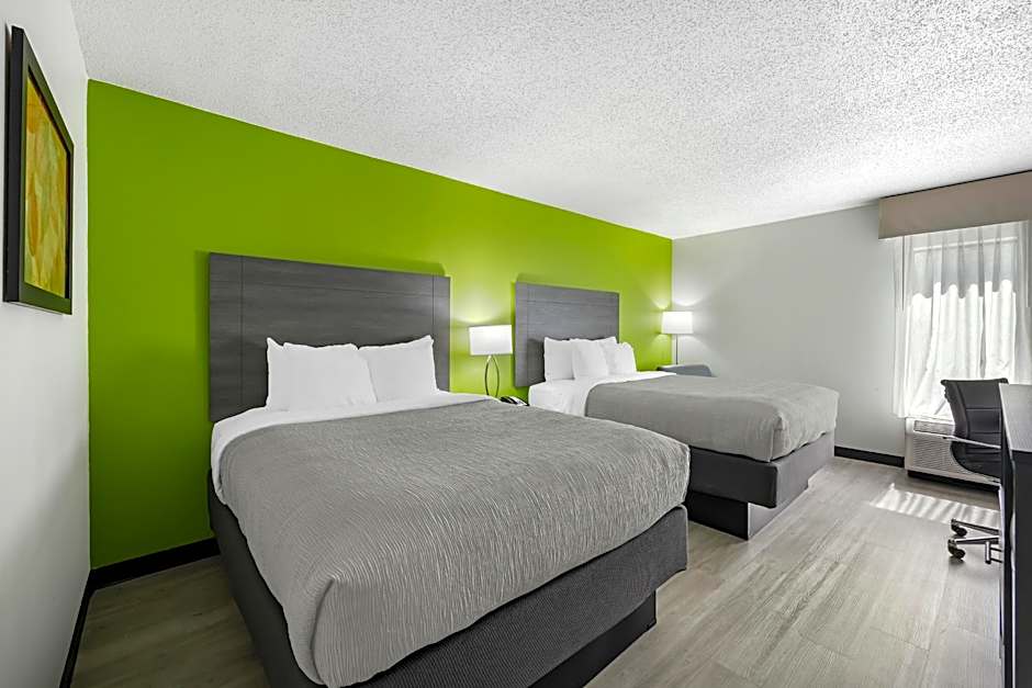This room features a microwave, refrigerator, and flat-screen TV. A hairdryer and desk are provided.